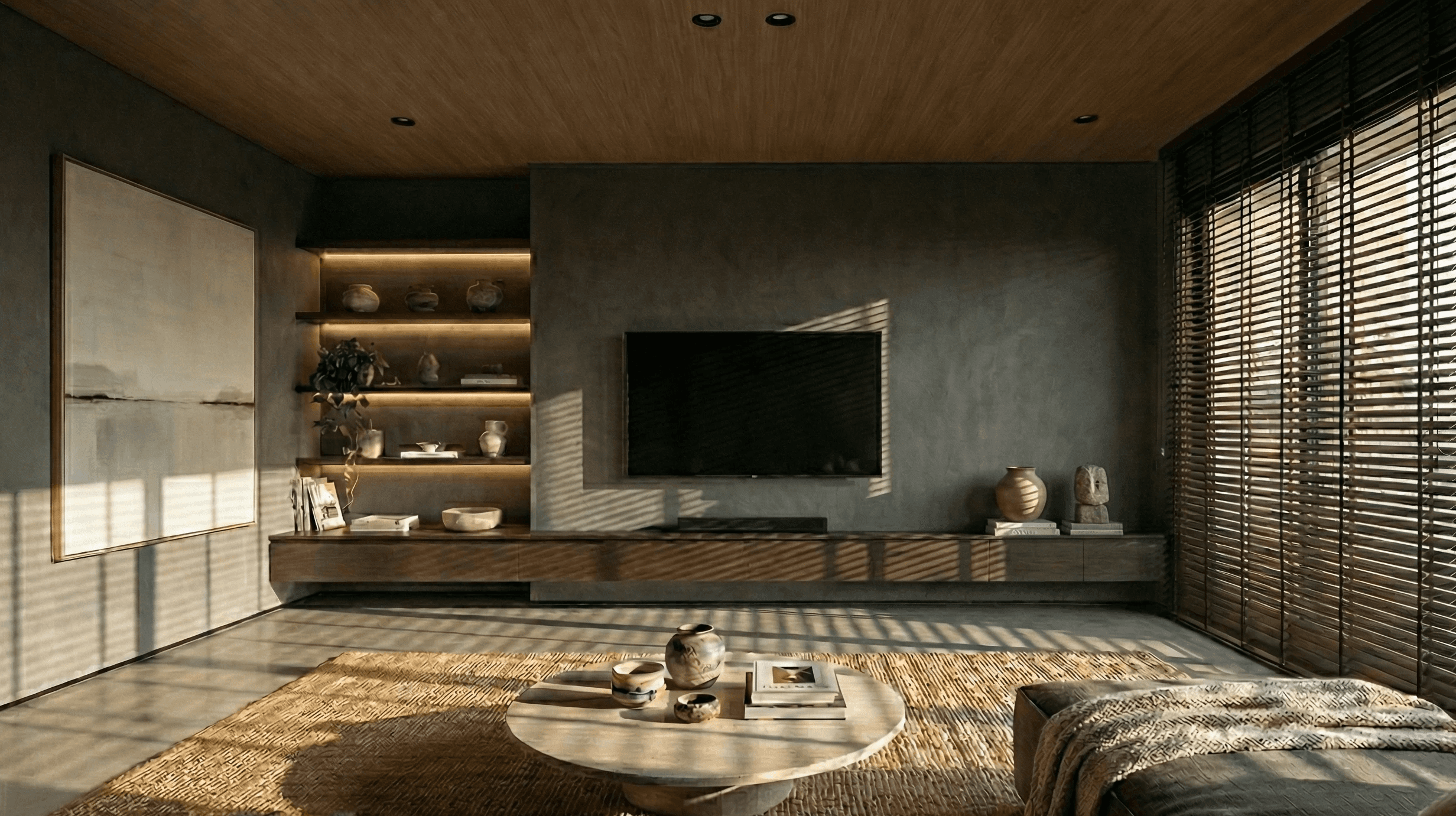 我們以灰與米為主色調,模擬大地礦物的原始色澤。靈感具象化於異材質的拼接上,透過天花板嵌入的流線燈光,如同精密的算式劃過天際,將科學的精準美學與居家生活完美融合,詮釋出專屬於林博士的現代紳士格調。